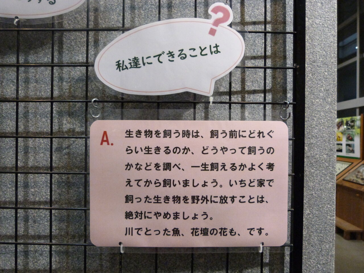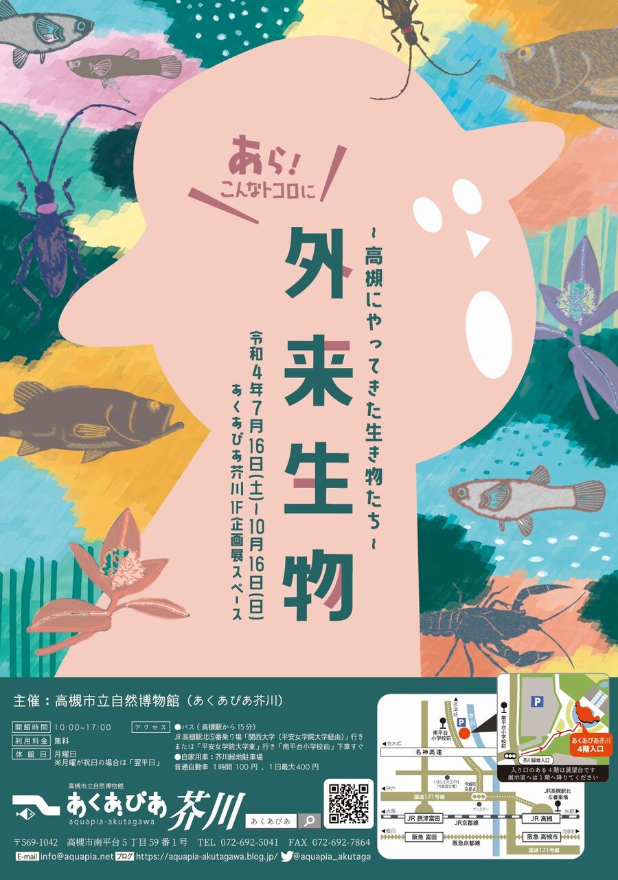 いつの間にか身近にいる外来生物。ただ悪者にするのではなく、「どうしてここに来たのか」「実は身近なところにもいること」「これからどのように接していけばいいか」などを考えていけるような内容を、パネルや写真、標本で紹介しました。