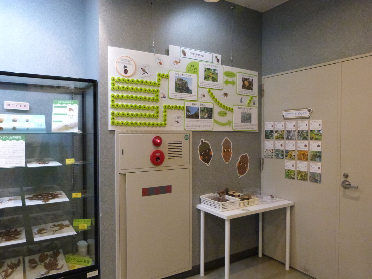2023年01月14日 企画展「たかつきのどんぐり」を3月12日まで延長します 企画展「たかつきのどんぐり」は1月9日(月)をもって終了しました。3月18日(土)までエレベーター工事のため企画展がありません。何もないのは寂しいので、規模を縮小して展示しました。 展示スペースの廊下部分に、パネルを移動させました。ポンポン山のコーナーにも追加しました。