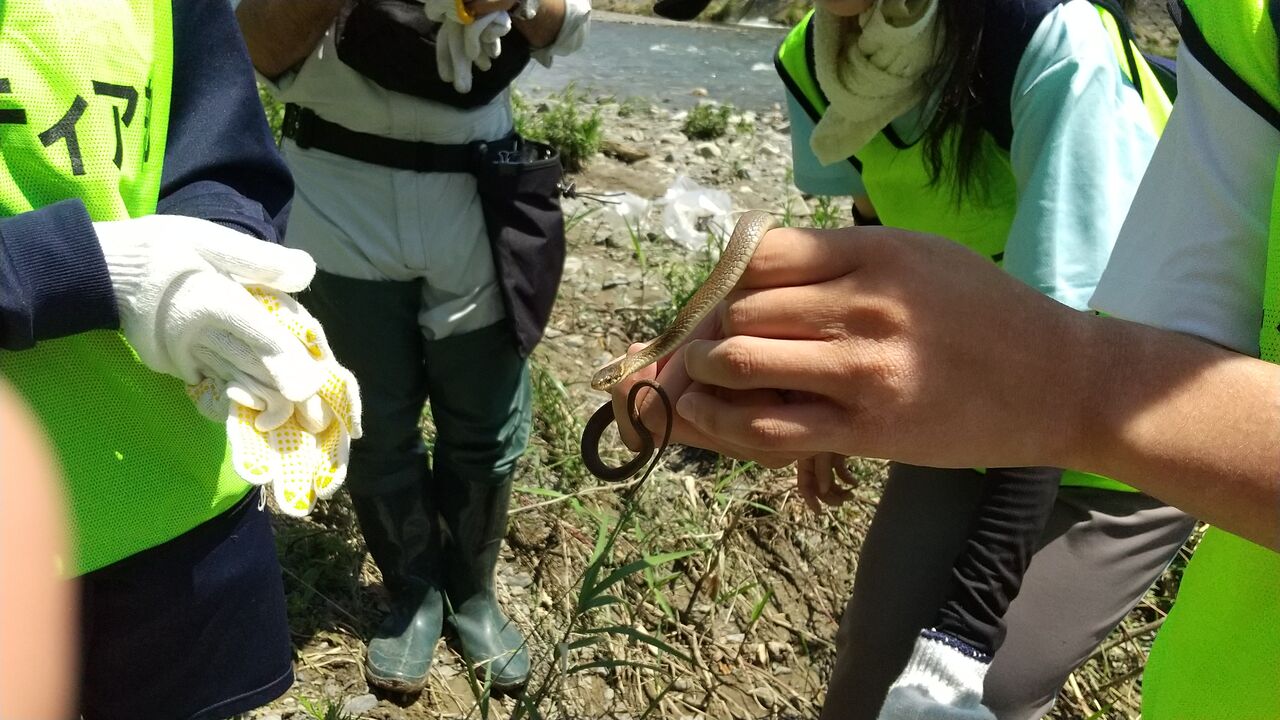 6月2日の台風と梅雨の大雨で、芥川は石ころの河原が見えなくなるほどに増水しました。6月4日の活動では、増水で流されてきてひっかかったビニールなどが多かったです。金属などの燃えないゴミは増水で地中から掘り起こされたのか、錆びた古そうなものがありました。堤防から見下ろしたときはキレイに見えたのですが、河原に降りるとたくさんのゴミがありました。