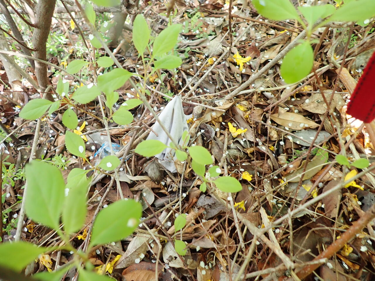植え込みの中からたくさんのゴミが発掘されます。