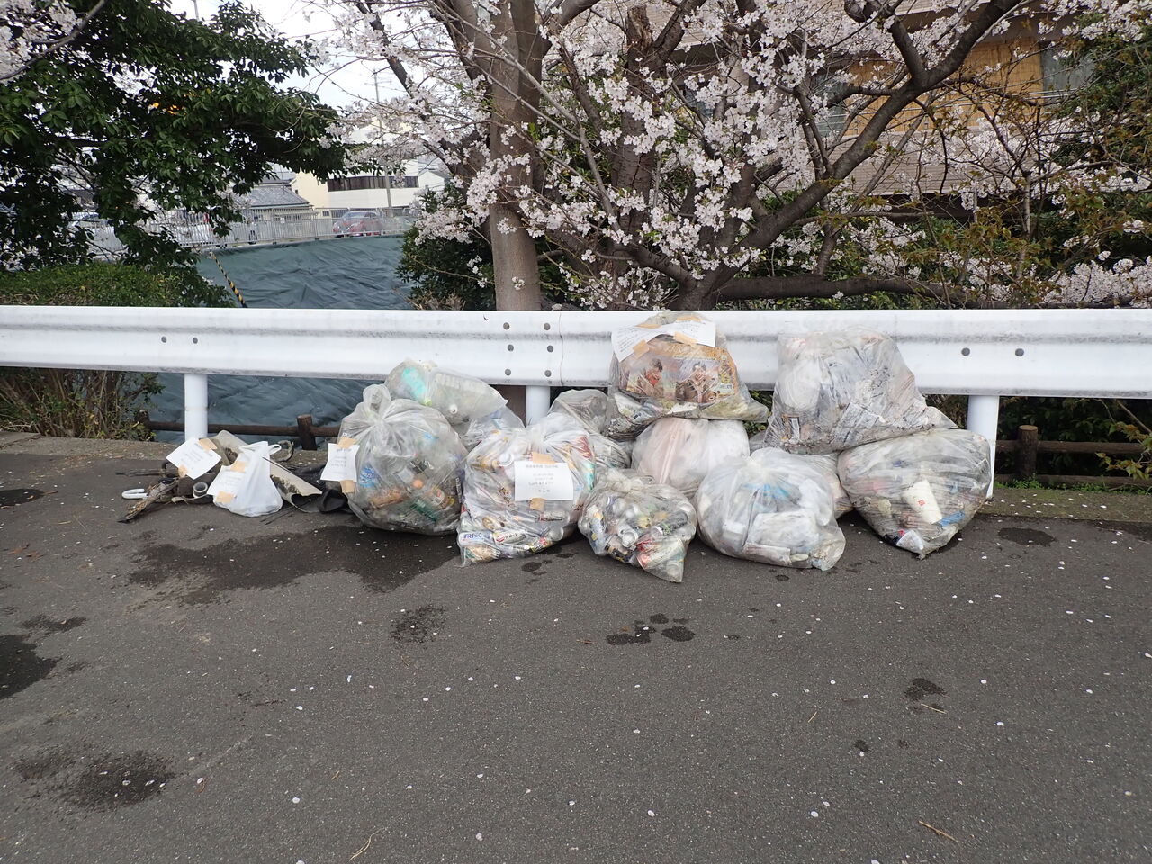 車道沿いは車から捨てる人がいるので、ゴミが多いです。