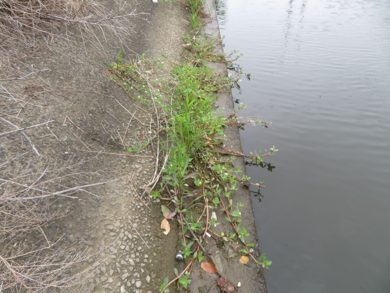 コンクリートの隙間に根をはり、水面に出ようとしていました。
